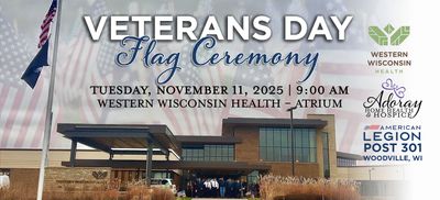 This Veterans Day, on behalf of Adoray and Western Wisconsin Health, we invite you to gather as a community to remember, honor, and celebrate the brave men and women who have answered the call to serve our country. Tuesday, November 11, 2025 9:00 AM Wes...